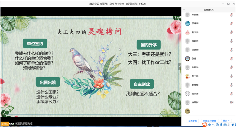 会议最后,同学们针对自己的疑问与李老师进行热烈的沟通与交流。本次会议为学生的就业选择提供了精准的帮扶指导,帮助学生面对未来做好正确的选择,成就属于自己的路。