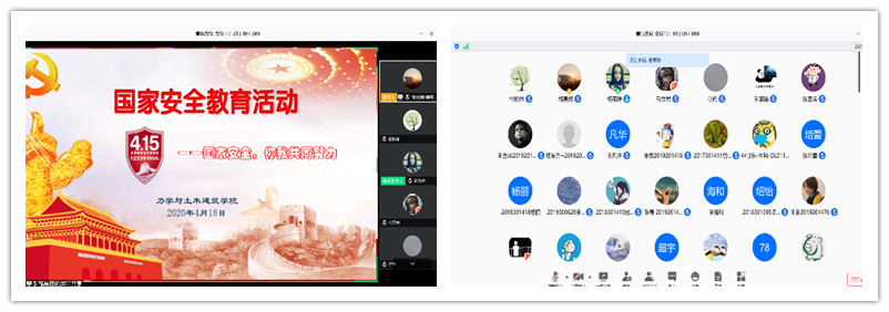 4月15日全民国家安全教育日当天,学院各个班级通过“QQ群课堂直播”、“钉钉”、“腾讯会议”等多种线上平台及形式开展班会,学习国家安全的相关法律法规,针对当前疫情情况,着重探讨了公共卫生安全、生物安全等方面。学生们联系自身实际,结合国家安全、爱国主义价值观培养、疫情防控等多个方面展开了热烈讨论。其中2017级硕士生贠铮表示,生物安全是国家安全的一个重要组成部分,与现代公共卫生安全有着密不可分的关系,近期疫情对于全球经济增长、国际赛事等活动都产生了很大影响,这也凸显出维护公共卫生安全和生物安全的重要性。参加完主题班会后,2018级本科生王璎珞说道:“虽然是和平年代,但也正是国家安全最需要维护的年代,我们应当树立坚定的国防意识,坚决意识到国家安全的重要性,并为之作出自己的努力”。通过线上主题班会的开展,同学们感受到了国家安全与自己的生活言行息息相关,从而认识到:维护国家安全,需要从我们自己做起,从身边的点滴做起。
