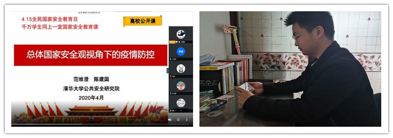 连日来,学院依靠党团支部活动、班团活动、新媒体平台等渠道,通过组织参加“千万学生同上一堂国家安全教育课”,组织收看在线视频、开展党支部线上专题研讨和分享,以班级为单位召开线上国家安全主题教育“云”班会,开展专题“云“团课等多种方式,深入开展“总体国家安全观”专题教育。