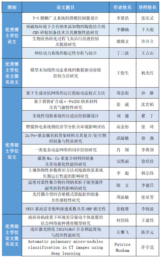 继续教育培训网首页近日,2019年辽宁省优秀博士、硕士学位论文评选结果已公布。经学校推荐、专家评审和网上公示等,我校19篇学位论文获2019年辽宁省优秀学位论文和优秀学位论文提名。其中,《T-S模糊广义系统的滑模控制器设计》等4篇博士学位论文被评为2019年辽宁省优秀博士学位论文;《模型未知线性动态系统的数据驱动容错控制方法研究》被评为2019年辽宁省优秀博士论文提名论文;《基于生成对抗网络的运行指标动态校正方法》等11篇硕士学位论文被评为2019年辽宁省优秀硕士学位论文;《政府补贴政策下环境差异驱动个体意愿的社会网络接种博弈模型研究》等3篇硕士学位论文被评为2019年辽宁省优秀硕士学位论文提名论文。