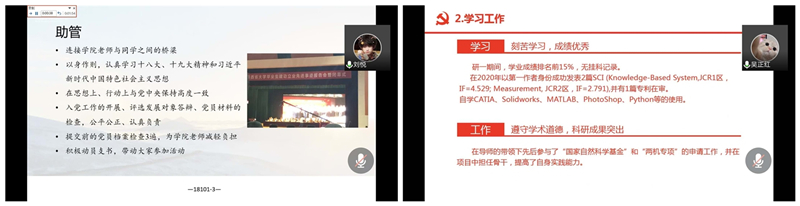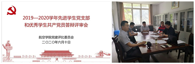 评审开始前,评审组首先学习了学校党委学生工作部《关于评选2019—2020学年先进学生基层党组织和优秀学生共产党员的通知》,林欢欢老师介绍了前期各学生党支部的评议推荐意见。而后,学院评委会成员在航空楼A308集中在线观看了拟推荐对象的PPT答辩。答辩结束后,评委会采取材料审核、现场打分、集体研究的方式,推荐了2个学生先进党支部和4名学生优秀共产党员,并按照要求组织公示。