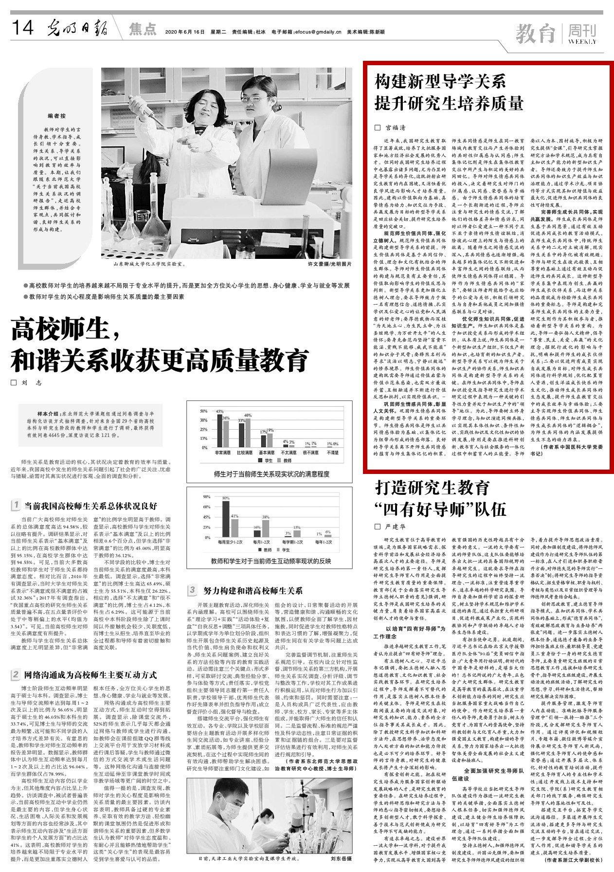 继续教育培训网首页近年来,我国研究生教育取得了显著成就,培养了大批服务国家和地方经济社会发展的优秀人才。但同时我国研究生培养过程中也暴露出诸多问题,尤为凸显的是导学关系的异化,这既折射出研究生教育的内在困境,又消蚀着优良学风进而影响人才培养质量。因此,建构以价值取向为基础、真挚情感为动力、知识交往为手段、共赢发展为目标的新型导学关系是回应社会关切、提升研究生培养质量的突破口。