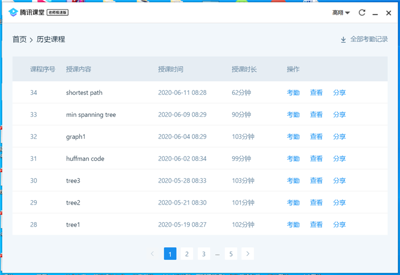 高翔老师采用腾讯课堂录制的网课