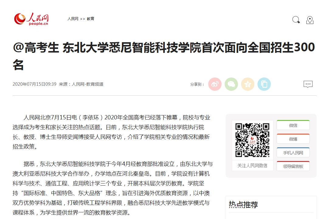 人民网北京7月15日电(李依环)2020年全国高考已经落下帷幕,院校与专业选择成为考生和家长关注的热点话题。日前,东北大学悉尼智能科技学院执行院长、教授、博士生导师史闻博接受人民网专访,介绍了学院相关专业的情况和最新招生政策。