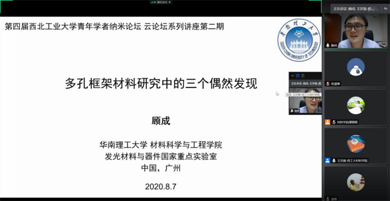 本次青年学者纳米论坛由西北工业大学材料学院纳米能源材料研究中心主办,旨在促进纳米材料与技术在能源、环境、医学、信息、电子、国防等领域的学术交流与发展,对我校全力推进“双一流”建设具有重要而深远的意义。该论坛自2017年起已连续成功举办3届,今年由于疫情原因,改为“云论坛”系列讲座的形式开展。在本期“功能纳米材料合成”主题讲座结束后,后续将分别围绕纳米科技领域的其它前沿研究方向组织举办系列讲座,欢迎各位师生予以关注。
