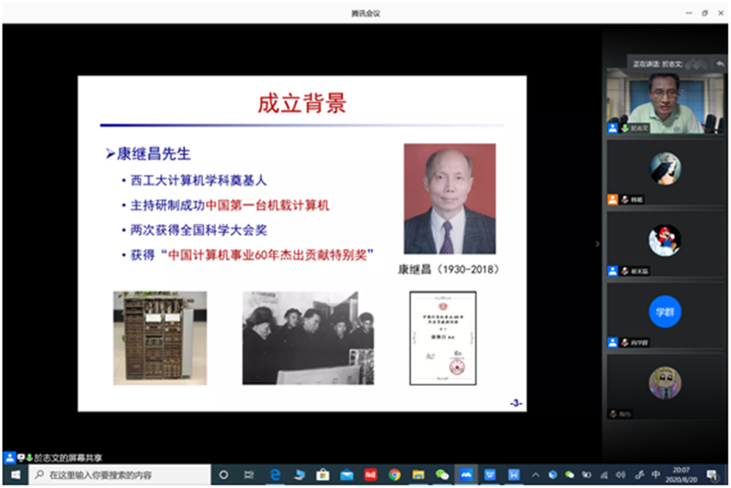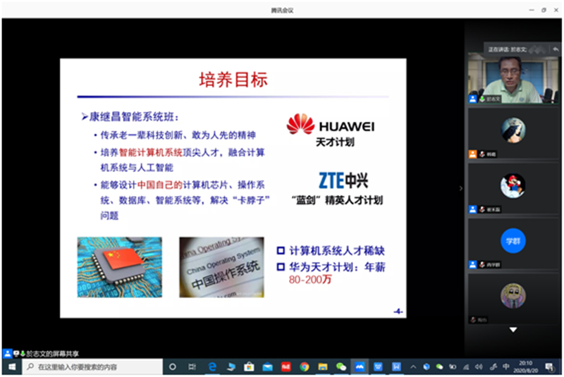 继续教育培训网首页8月20日晚,计算机学院开展了线上康继昌智能系统班选拔宣讲会,会议由教学副院长尚学群主持,院长於志文进行宣讲。为培养计算机拔尖创新人才,传承康继昌教授等老一辈创立的“软硬结合,注重系统”的学科特色,依托“康继昌教育奖助基金”,计算机学院特设立“康继昌智能系统班”,重点培养学生的计算机系统创新能力。