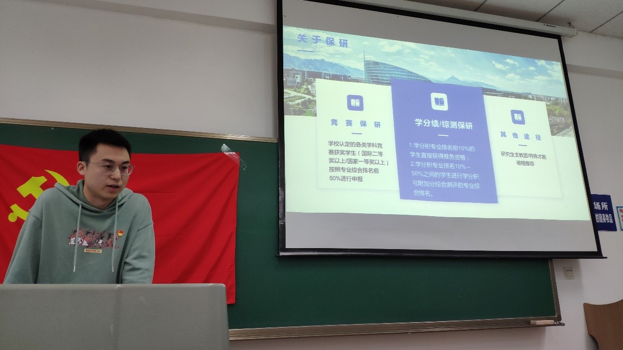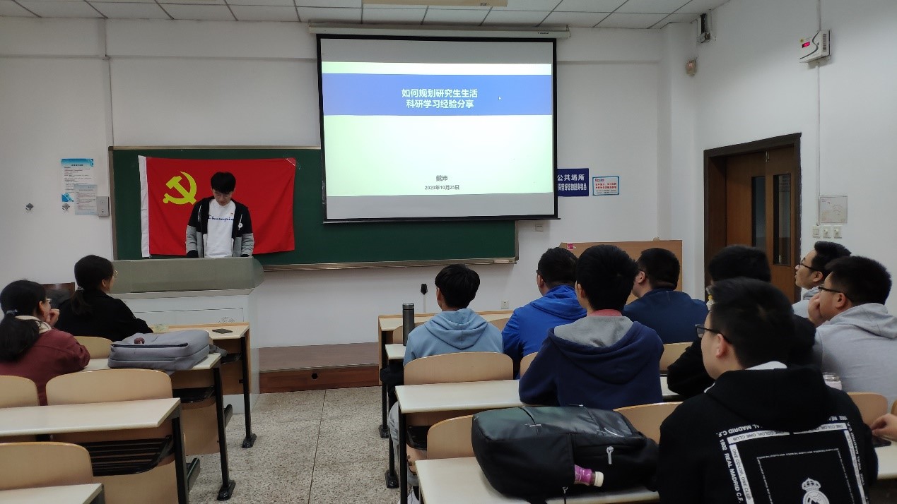 接着,支部邀请研三的汪佩给大家分享保研和就业经验,他通过分析学校的相关文件,详细介绍每个时间节点前的准备工作。对于想要就业的同学,汪佩讲述了自己找工作过程中遇到的问题。