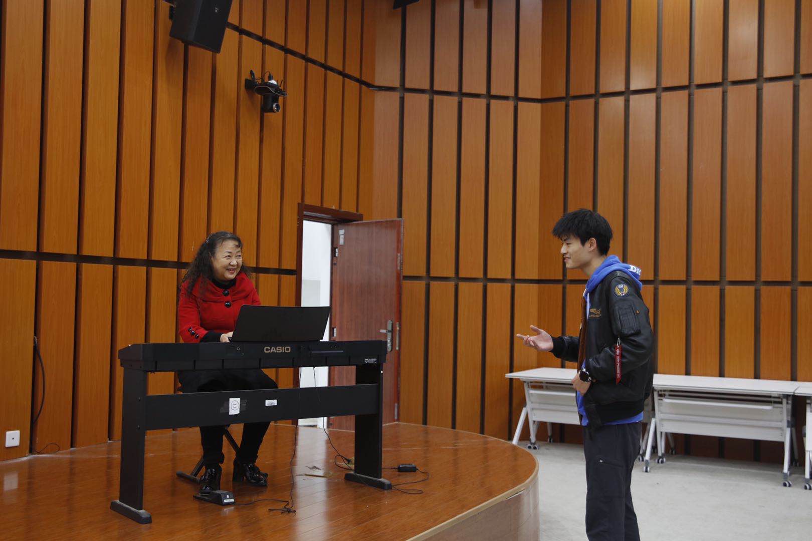 工作坊现场,队员们用两首参赛曲目开场,赵教授给予了同学们莫大的鼓励,同时就需要调整的歌曲声部给出了改正意见。针对同学们提出“找不到发声高位置”这一问题,赵教授亲自示范并指出,歌唱时生理位置和感觉位置不同,想象声音从额头上方发出共鸣。除了唱歌技巧方面的指导,赵教授还强调,对于歌者来说,面部表情管理与歌声同等重要,两者合二为一才能更好地感染观众。祝愿大艺团合唱队在接下来的艺术展演中取得佳绩。