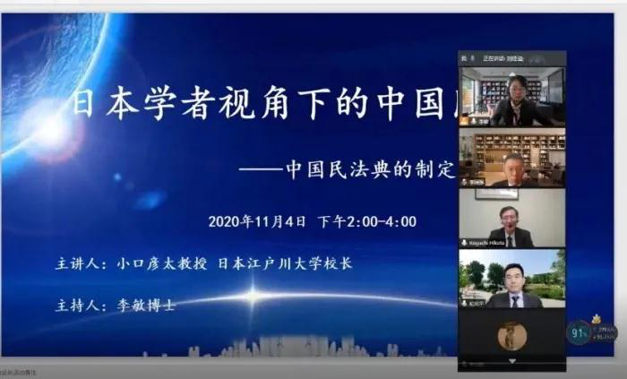 继续教育培训网首页11月4日下午,大连海事大学法学院邀请江户川大学校长小口彦太教授为法学院师生作题为“日本法学视角下的中国民法典——中国民法典的制定与合同法”的讲座。法学院院长初北平在讲座中发表亲切致辞,李国强教授、黄芬副教授担任与谈人,海大数百余名师生线上参与了此次讲座,讲座由法学院李敏老师主持。