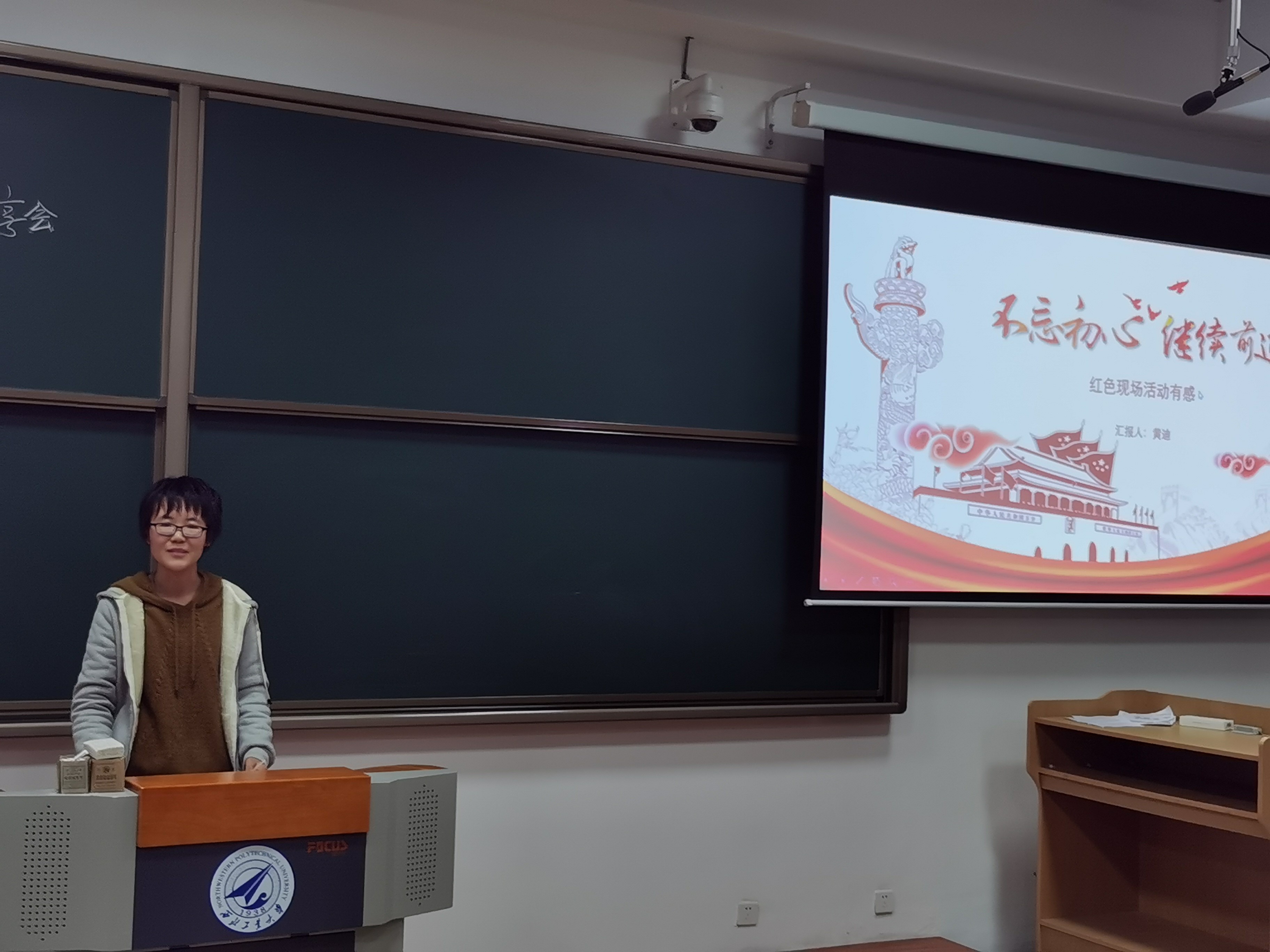 从彦同学表示因从小聆听祖辈讲述抗战故事,在参加红色现场教学活动时内心有很多感触,他呼吁新青年,既要饮水思源,以古为鉴,又要继往开来,再创新篇。他的分享在同学当中引起热烈的反响与讨论。霍清华同学感悟到作为中国民族精神重要组成部分的照金精神,是青年一代贴近中国精神的重要途径。陶豪同学说在照金革命纪念馆重温了中国共产党人为了革命事业的胜利,不怕牺牲,浴血奋战的光辉历程。星星之火可以燎原,正是这星星之火,使胜利的红色旌旗飘遍中国,点亮了中国革命的灯塔,指明了前进的方向。杜鹏阔同学讲述了在河南的饥荒之年,中国共产党打开军库,给老百姓送粮送物资的感人故事。王摄昆同学以“奋斗青春,扬梦中国”为主题,表示青年人应当以时代为使命,与时代共前进,将历史传承于心,走得再远、走到再光辉的未来,也不能忘记走过的过去。黄迪同学声闻并茂的带大家重温纪念馆中没有照片的功勋墙及不合常识般陡峭的天梯。随后,她忆起疫情期间舍生忘死奋斗在一线的医护工作者和部队战士们,不禁动情落泪……