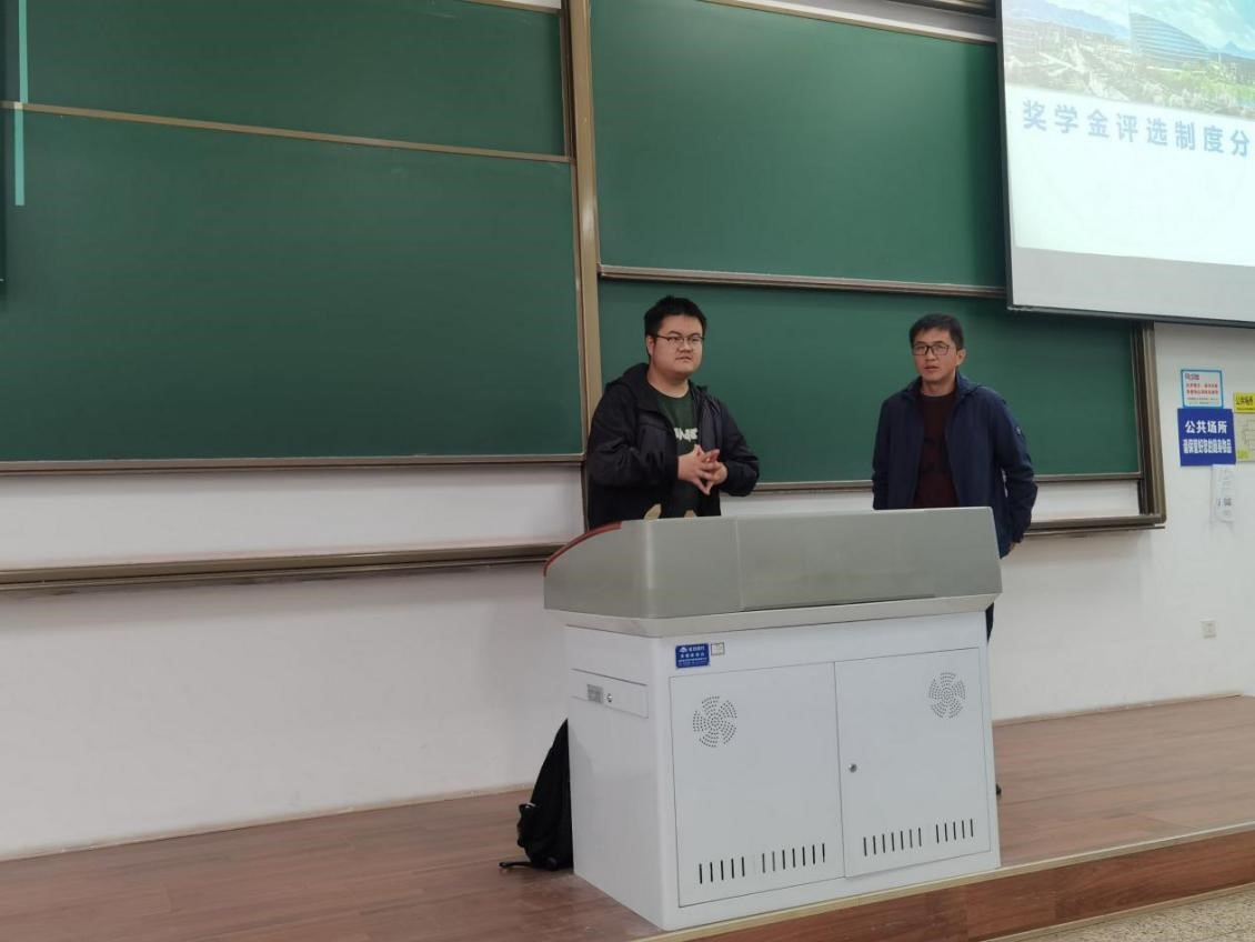 随后,为进一步加强学风建设,营造良好学习氛围,特邀请2019级大类优秀学长进行了学习经验分享交流。2019级边张驰、黄诚俊两位学长结合自身学习经历,对大类奖学金评定及创新创业竞赛参加情况进行了介绍;屈佳润同学针对全英班奖学金和先进团队奖学金的评定进行了详细的解读。随后三维学长围绕同学们关心的学习活动时间分配、奖学金评选等问题进行了交流。