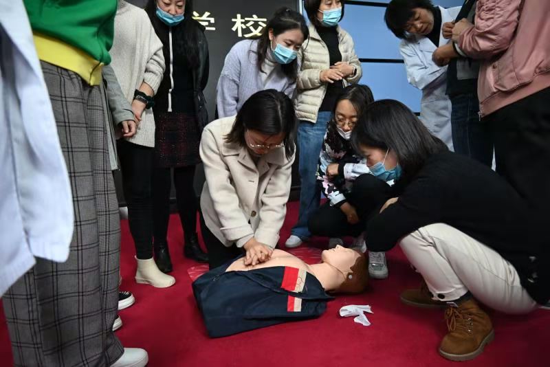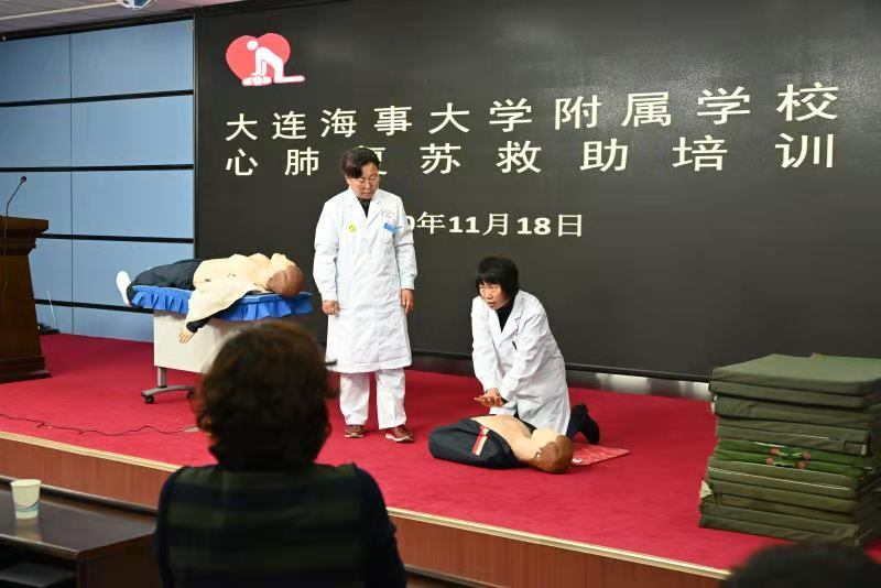继续教育培训网首页为了进一步普及教职工的急救知识和应急救护能力,附属学校于11月18日邀请大连海事大学校医院院长马春莲、党支部书记曹宝新、护士长邹广文、办公室主任邹环宇,为全体教工举办了一场心肺复苏实践培训。