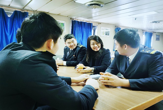 最后,孔朝霞向同学们布置了一项特殊的海上社会实践任务,即聚焦“鲲鹏梦、海洋梦、强国梦”,依托“流动的国土”,紧紧围绕“海”元素,充分运用在船上航行或靠岸实地拍摄的照片、视频和海上直播等“育鲲航行见闻”精彩素材,结合个人调研、实地采访、查阅资料等方法,以微电影、微视频或公众号推送等形式完成“海上观察家”微影制作任务,并鼓励同学们参加学校“海上观察家”社会实践作品评奖活动,获奖作品将在网络媒体上展演,并向国家级微影大赛推荐。