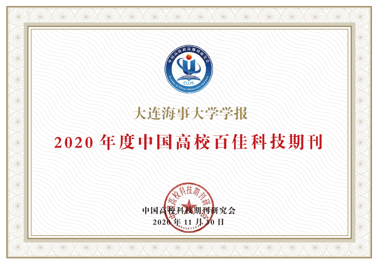 《大连海事大学学报》入选“中国高校百佳科技期刊”,得益于作者、编委和审稿专家对学报的大力支持,也得益于编辑部长期以来对稿件学术质量和编校质量的严格把关。未来,学报编辑部将进一步聚焦海上运输工程领域学术前沿,创新办刊模式,提高服务水平,在促进学术交流、推广科技成果以及促进建立良好学术风气等方面做出更大贡献。