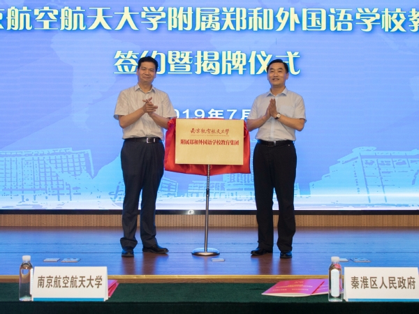 咨询电话:7月5日,我校与秦淮区人民政府签署《共建南京航空航天大学附属郑和外国语学校教育集团合作协议》,并正式为南航附属郑和外国语学校教育集团揭牌。秦淮区区委书记林涛、区委副书记姜宸、副区长戴新,我校党委书记郑永安、副校长宋迎东,党委常委李遥、王晖,南航附属郑外教育集团董事长程松龄出席了签约暨揭牌仪式,仪式由姜宸主持。
