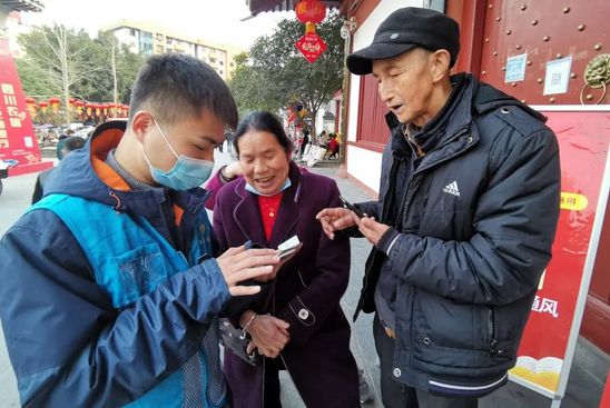 “请您到这边配合检测体温、登记信息。”“出门一定要正确佩戴口罩。”2月1日,东北大学第22届研支团志愿者叶嘉明、薛兆谨作为四川省三台县建设街社区疫情联防联控志愿者队伍的领队,正带领返乡大学生志愿者开展疫情防控工作。宣传疫情防控知识、为进出人员测量体温、逐户上门走访帮助居民注册健康码,在叶嘉明、薛兆谨的带领下,志愿服务团队共走访10余所小区,覆盖住户2000余人。