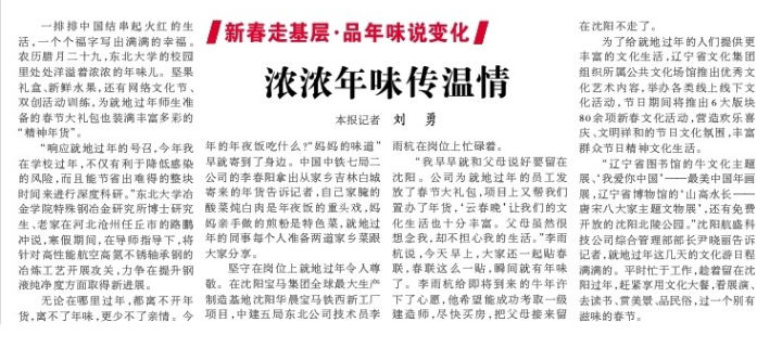 “辽宁省图书馆的牛文化主题展、‘我爱你中国’——最美中国年画展,辽宁省博物馆的‘山高水长——唐宋八大家主题文物展’,还有免费开放的沈阳北陵公园。”沈阳航盛科技公司综合管理部部长尹晓丽告诉记者,就地过年这几天的文化游日程满满的。平时忙于工作,趁着留在沈阳过年,赶紧享用文化大餐,看展演、去读书、赏美景、品民俗,过一个别有滋味的春节。