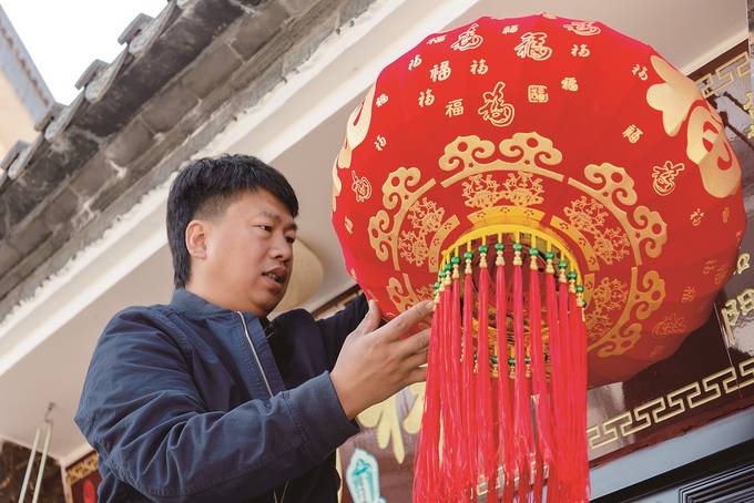 高大鲲在社区大院挂灯笼
