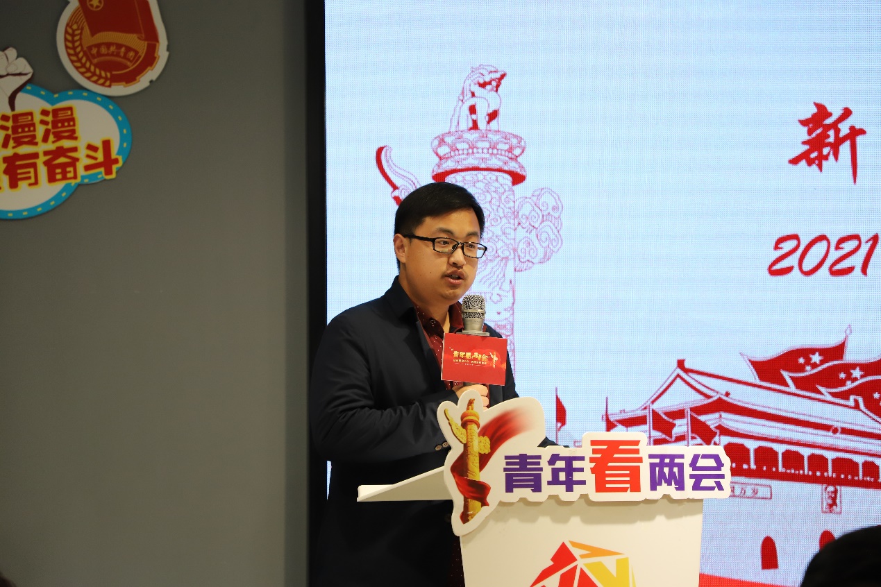 环境科学与工程学院硕士研究生于鸿宇结合专业知识分享了对今年两会有关生态文明建设的认识,讲解了两会热词“碳达峰”和“碳中和”的概念,号召同济学子要聚焦国家重大需求,突破环境保护与生态文明建设重大关键技术,为服务国家重大战略贡献青春力量。