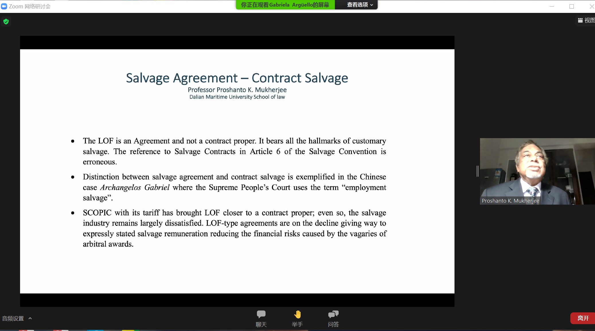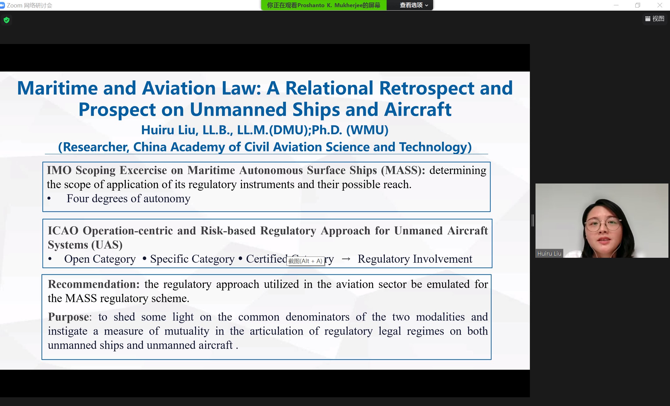 3月18日,瑞典哥德堡大学法学院举办了主题为“重新审视贸易、运输和海事法律:正确看待风险与技术”的线上研讨会。会议包含四个议题:贸易和运输领域的法律制定及争议解决;不断发展的监管和合同制度;新技术在航运中的使用;海洋环境监管风险。法学院Proshanto K.Mukherjee教授受邀在第二个议题中发言,题目是“救助协议和合同救助:海难救助中的风险”。同时,他还主持了第三个议题的讨论。我校毕业生、中国民航科学技术研究院刘慧茹博士也受邀在会上作了精彩发言。