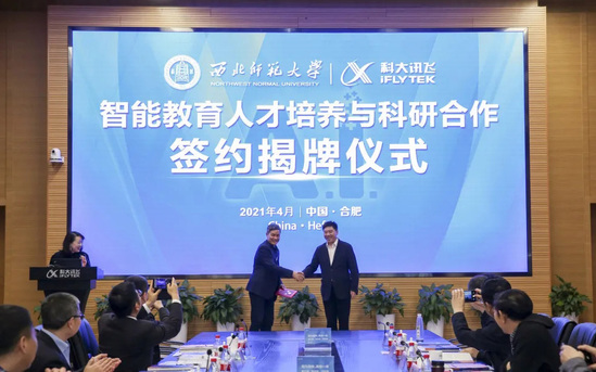 继续教育培训网首页4月1日,西北师范大学与科大讯飞研究生培养基地签约揭牌仪式在科大讯飞合肥总部举行。西北师大党委书记张俊宗、副校长韩高年,学校相关学院、部门负责人,科大讯飞总裁吴晓如,副总裁聂小林、汪张龙、王士进等出席揭牌仪式。揭牌仪式由科大讯飞副总裁、党委副书记任萍萍主持。