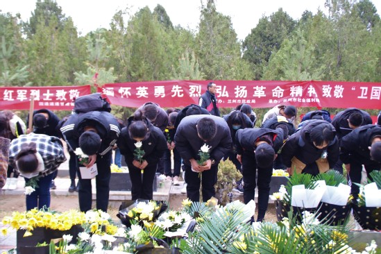 活动中,西北师范大学师生代表手捧鲜花,来到卫国戍边烈士纪念广场,认真聆听卫国戍边英雄事迹。在陈红军烈士墓碑前,他们肃立默哀,敬献鲜花,弘扬英雄精神、传承红色基因。