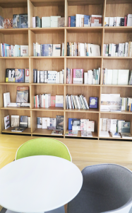 书架上陈列了涵盖哲学、艺术、文学等各个领域