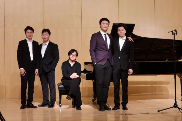 从左至右:利兹国际钢琴比赛中国代表 阮琳婷 与中央音乐学院钢琴系主任韦丹文教授,教务处处长汤琼教授,国际交流处处长陶倩