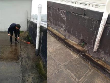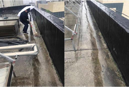 清明时节雨纷纷,公寓的楼管师傅们一边打着伞,一边用扫帚、铁锨等工具把影响屋面防水层的杂草、杂物等清理干净;逐一检查各屋面落水口,清除排水口及沟槽附近的落叶、淤泥等杂物,确保在雨季来临前各学生宿舍屋面整洁和排水畅通。
