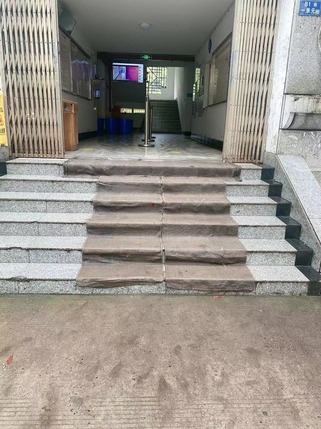 与此同时,公寓中心非常重视“雨季”前各学生公寓楼前地面安全工作布置,在各学生宿舍楼栋门口铺置“防滑垫”,为同学们平安出入楼栋提供保障。
