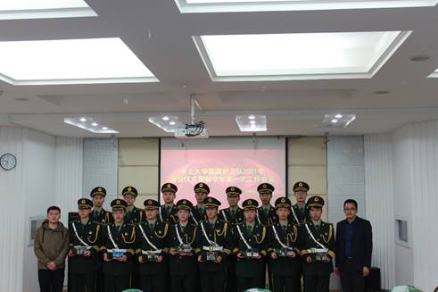 退役仪式在庄严的《中华人民共和国国歌》的旋律中拉开帷幕。党委武装部副部长徐长文为退役队员颁发纪念品,感谢他们在国旗护卫队建设过程中的辛苦付出,并勉励新队员传承红色基因,厚植家国情怀,将国旗护卫队的精神火种传递下去,以更加昂扬的斗志和更加饱满的热情完成好接下来的每一次升旗任务,以优异成绩庆祝中国共产党建党100周年。