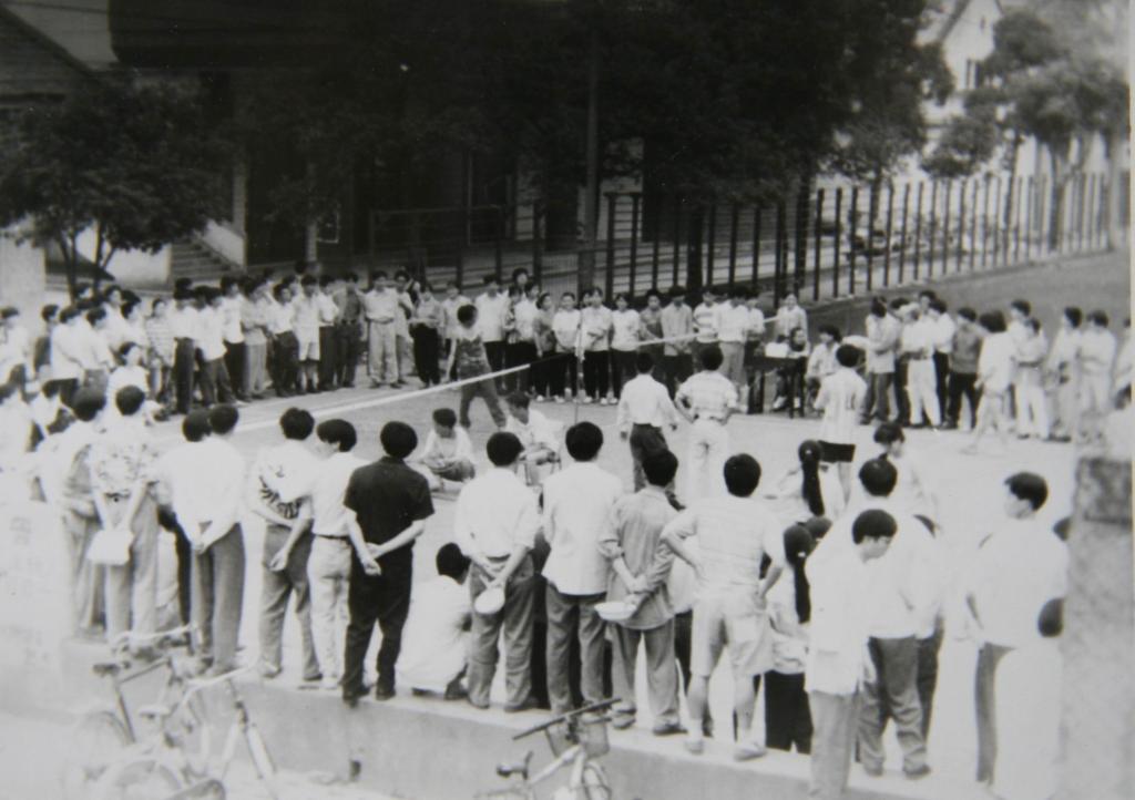 今天,如果你在体育馆前驻足,可以听到乒乓球乒乒乓乓的响个不停,舞蹈的节拍“咚咚锵锵”;走进去,看舞动的红拍击打出青春的热情,奋斗的身姿秀出青春的美丽姿态。