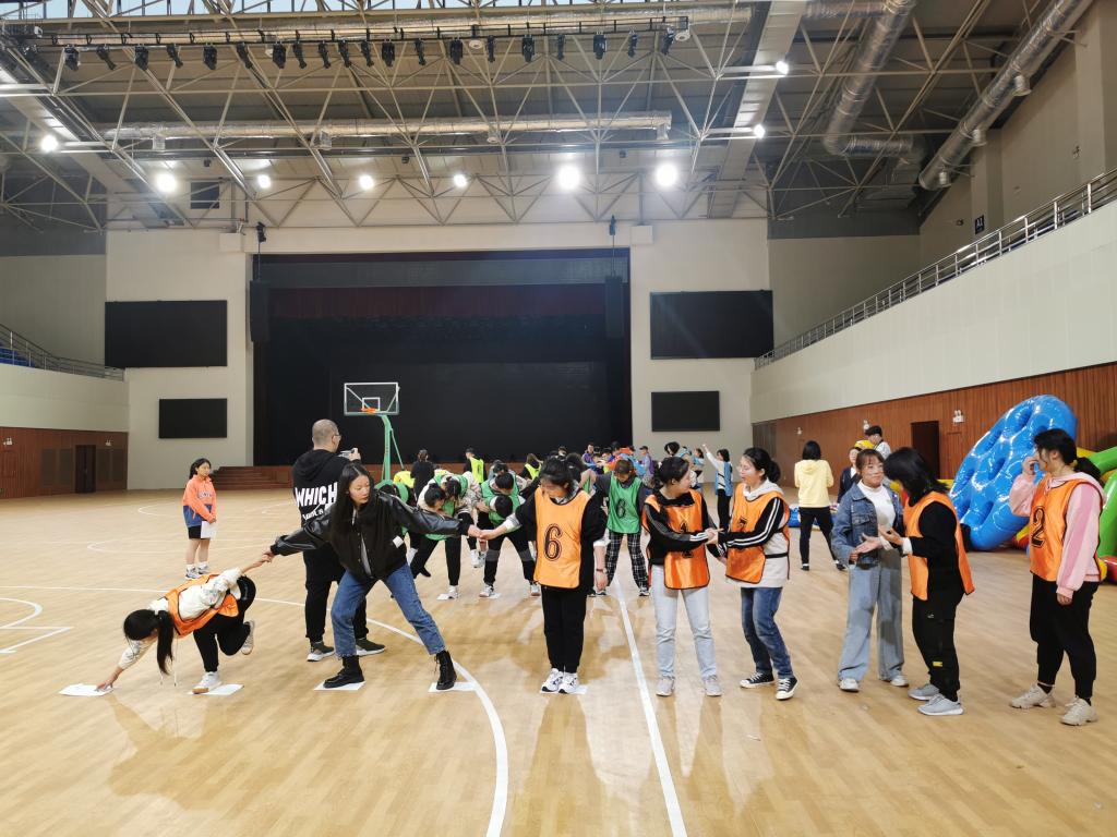 随后,为实现“打开自我、增进友谊、磨练意志、熔炼团队”目标,营员们在专业教练的带领下开展了首次素质拓展活动。在完成热身运动和分组后,大家兴致勃勃地参与“青蛙跳水”“大王拳”“飞夺泸定桥”“极限挑战”等游戏活动。整个活动过程充满了欢声笑语,时而有商有量、相互配合,时而动作敏捷、争先恐后,处处都可以感受到同学们友爱合作的温暖。