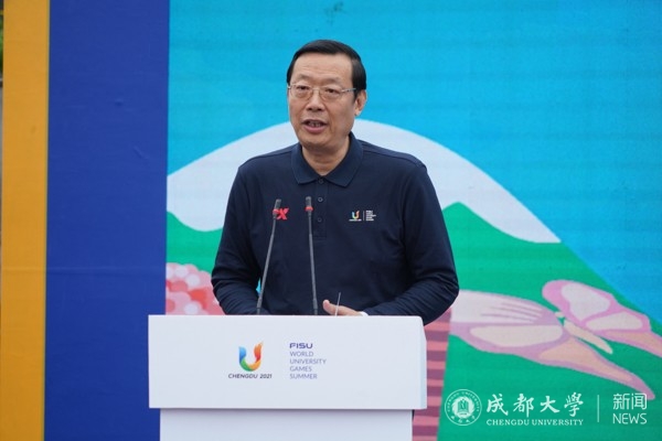张剡在致辞中说:世界大学生运动会夏季运动会是世界上规模最大、最负盛名的体育赛事之一,通过参与此次活动,希望在蓉港澳台侨大学生们力争当好文明城市“践行者”、天府文化“宣传者”、赛事名城“交流者”,增强对成都大运会的参与感和荣誉感,期待与成都、与全世界共同见证大运会的美好时光。