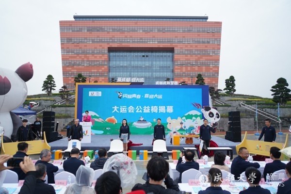 活动启动仪式上,主持人为在场嘉宾介绍了成都大学大运村的相关情况。成都大学就是第31届世界大学生运动会大运村所在地,明年全世界的大学生运动员和代表将在这里增进友谊,放飞梦想。在蓉港澳台侨学生代表一起上台揭晓了代表着大运梦想的椅子。为践行“绿色、智慧、活力、共享”的大运会办赛理念,成都计划依托天府绿道这一世界最长绿道系统,以“椅靠梦想,我为大运添风景”为活动主题,汇聚全球人士对成都践行公园城市示范区的祝福,打造出2021把公益座椅,以此丰富大运遗产内容。椅身上的手绘图案汇聚了中国香港、中国澳门、中国台湾的地标性建筑,代表了所有在蓉港澳台侨大学生对大运会的祝福和期望。本次活动是大运公益椅的第一次亮相。