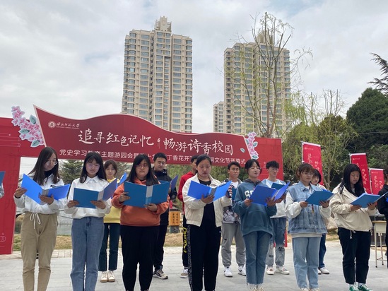 “六盘山上高峰,红旗漫卷西风。今日长缨在手,何时缚住苍龙?”4月13日,一场别开生面的文学院“诵读百年经典,传承红色基因——‘为你读诗’诗歌沙龙”活动如约而至,来自学院团支部的学生在如意湖畔诵读红色诗词、追忆党的百年芳华。文学院还开展“追寻红色记忆,畅游诗香校园——党史学习教育主题游园会”,在燕园、秦园、陇园、如意湖通过领取“闯关卡”方式,进行党史知识答题、红色诗词接龙和党史谜语竞猜,把“四史”教育融入学生爱国主义教育、理想信念教育和思想政治教育,引导广大党员、团员深入了解党的百年奋斗史,坚定理想信念,厚植爱党爱国爱社会主义情怀。