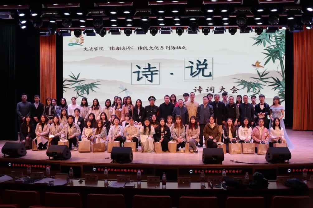 继续教育培训网首页4月14日,文法学院“绎古奕今”传统文化系列活动之“诗•说”诗词大会决赛在图书馆报告厅举行。东北大学学生工作处副处长韩磊,文法学院党委书记隋永强,学院党委副书记、副院长夏风云(兼)及东北大学“保安诗人”李英明作为嘉宾莅临现场。原文法学院党委书记杨建春,校关工委委员曹英禹,新闻学系顾宁,公共事业管理系徐建、王光担任本次比赛的评委;文法学院学生工作办公室全体教师及百余名同学出席本次活动。