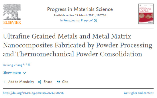 继续教育培训网首页近日,东北大学材料科学与工程学院张德良教授以第一作者和通讯作者的身份,在国际材料领域顶级综述期刊《Progress in Materials Science》(期刊影响因子IF=31.56)上发表了长篇综述论文“Ultrafine Grained Metals and Metal Matrix Nanocomposites Fabricated by Powder Processing and Thermomechanical Powder Consolidation”。