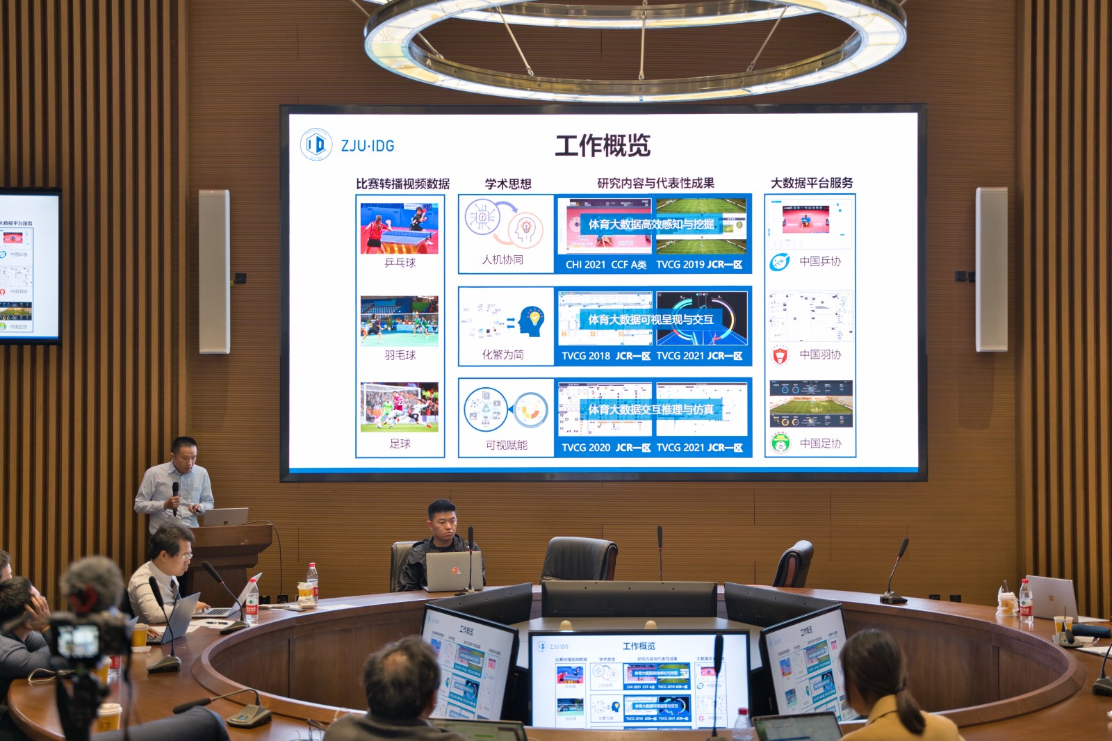 浙江大学巫英才教授报告中分享了体育竞技的策略以评估竞技队伍的优劣势是计算体育学这一新兴学科的研究话题,而可视分析技术是实现上述目标的可靠技术。巫老师介绍了团队近年来围绕计算体育学的丰富成果:利用人机交互的方式辅助用户从运动转播视频中采集轨迹、事件及语义数据;利用基于模拟分析的可视分析系统Tac-Simur来分析乒乓球的竞技策略;利用可视化技术来分析足球运动中的策略;结合文本挖掘技术的可视分析工具PassVizor来分析足球运动中的传球策略模式;以沉浸式的方式来可视化羽毛球运动中的轨迹数据等。