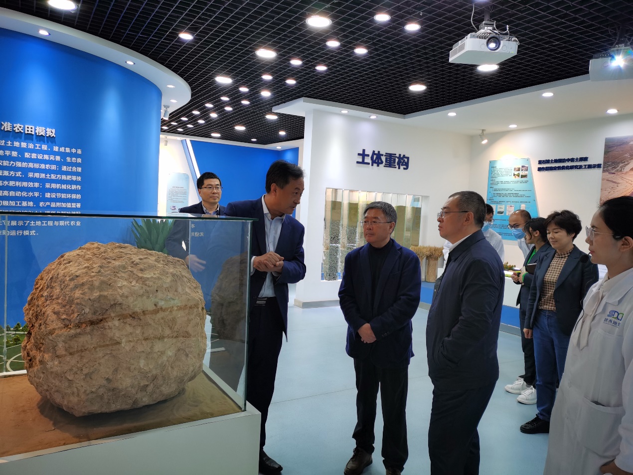 郭立宏一行先后参观了陕西地建集团科技成果展厅、工程展示中心、基础实验中心及大项目数字化智能管理中心等展馆和实验室,深入了解了集团科技发展现状。