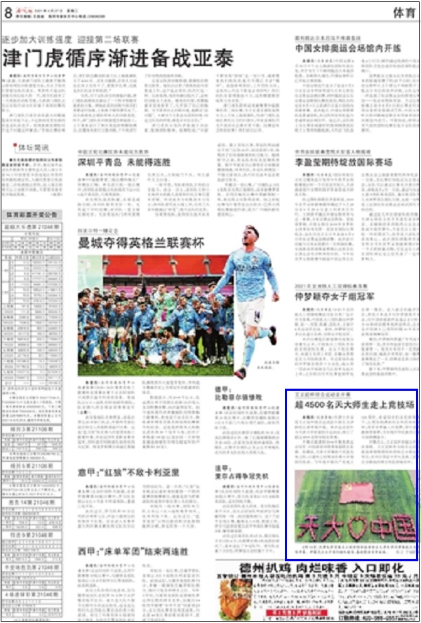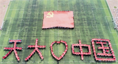 4月24日,天津大学首届王正廷杯综合运动会在天津大学卫津路校区体育场开幕。开幕式上大学生们组队造型,喜迎党的百岁诞辰。张立 于福旺摄