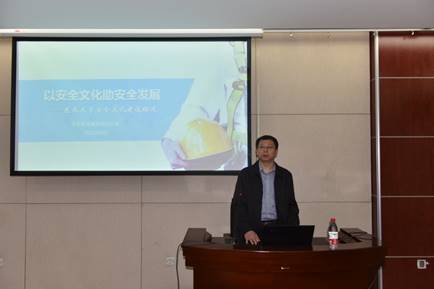 尚子扬分别从“安全管理三个发展阶段”“安全文化的概念及内涵”“我校安全文化建设初探”三个方面对学校未来安全建设的发展方向和目标进行了阐述和拓展。在历经三年安全管理标准化建设后,学校37个部门和单位的安全管理工作均达标,学校下一步将全面进行安全文化建设,让安全意识、安全行为潜移默化地融入到全校工作和生活的方方面面,让被动的“要我安全”向主动的“我要安全”过渡,最后形成完善的安全文化建设蓝图,即安全理念集约化、安全制度系统化、安全管理标准化、教育培训立体化、安全行为规范化、安全本质智能化。