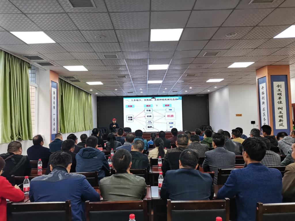 任万军一行还在广安、南充进行线下实地指导和培训,分别实地指导了广安区的福万加水稻种植家庭农场、前锋区的广安野春芽农业发展有限公司、南充南部县的容海种植专业合作社3家合作社的水稻育秧管理和技术落实情况,并面向广安各区县和园区的农技推广人员、农机推广人员和粮食新型经营主体进行了《机插稻育秧与高产关键农艺技术》、《水稻机械化生产装备与应用》的培训,并就高效生产问题进行及时解答。