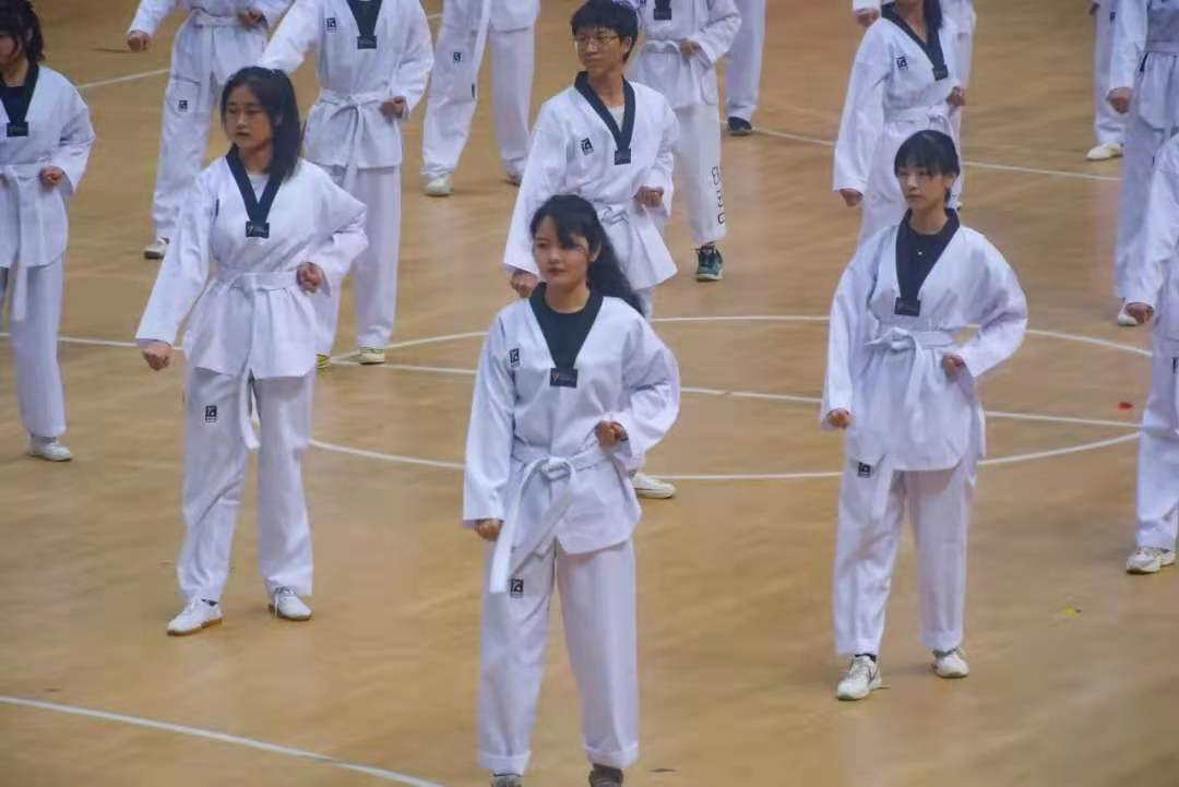 跆拳道表演由体育学院学生和跆拳道协会的30名同学共同完成