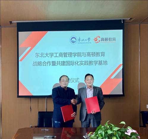 随后,工商管理学院与上海高顿教育集团战略合作暨共建国际化实践教学基地举行签约仪式。目前,学院已建成69所校外实践基地,其中1所省级实践教学基地,为学生提供了大量课外学习机会,并通过校企联合为学生搭建了实践教学平台。