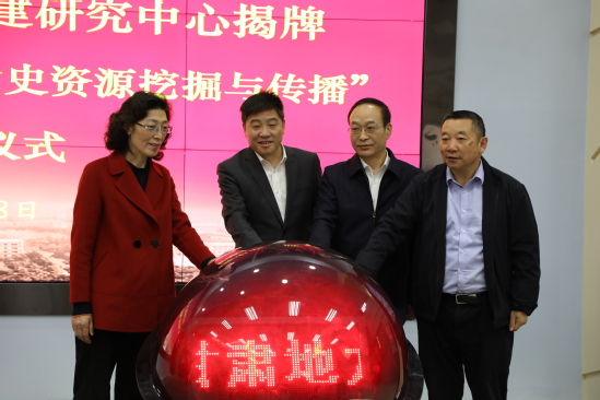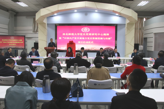 揭牌仪式上,西北师大党委组织部负责人宣读了研究中心成立文件,西北师大党委书记张俊宗与省委党史办巡视员孙瑛共同为“西北师范大学党史党建研究中心”揭牌,张俊宗、孙瑛、巩炜和西北师大马克思主义学院院长王宗礼教授共同启动“中国共产党甘肃历史研究与宣传”项目,孙瑛、张俊宗分别致辞。