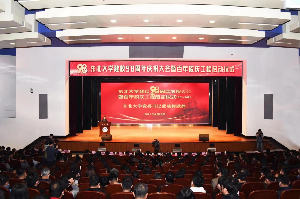 4月29日,东北大学建校九十八周年庆祝大会暨百年校庆工程启动仪式在汉卿会堂蔡冠深报告厅举行。杰出校友代表厦门钨业集团原党委书记庄志刚、第15届模拟炼钢挑战赛世界冠军石晓伟,东北大学党委书记熊晓梅、校长冯夏庭,中国科学院院士闻邦椿、中国工程院院士王国栋,学校领导班子、全校各部门负责人和师生代表参加会议。副校长孙雷主持大会。庆祝大会在浑南新校区和秦皇岛分校设分会场,并通过视频方式向东北大学全球校友在线直播。