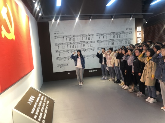在硕士支部书记的领誓下,新党员在党旗下庄严宣誓,老党员重温入党誓词,短短的入党宣誓,承载着党员们对党、对自己的庄重承诺。最后党员合唱《没有共产党就没有新中国》红色歌曲。
