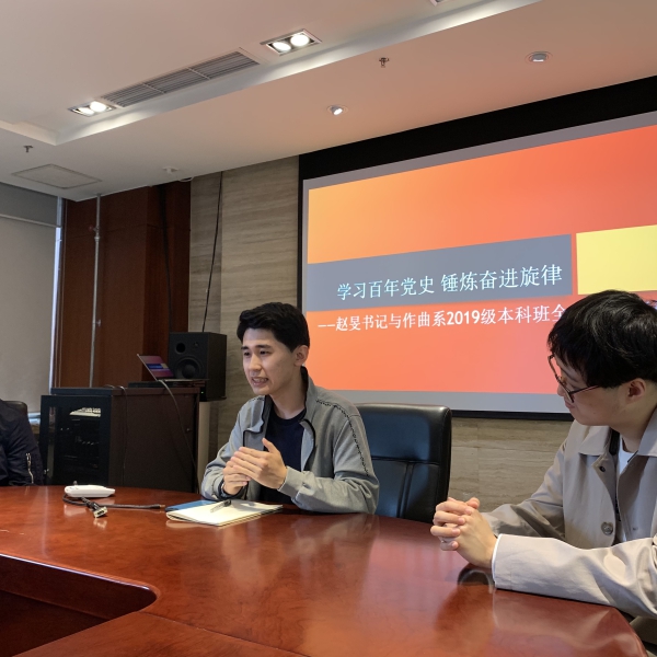 2021年4月29日,赵旻书记参加了作曲系2019级本科班全体同学座谈会。会上,赵旻书记认真听取了同学们关于学习、生活等方面的情况,针对同学们关心的问题,从历史责任高度,解答了艺术类大学生的使命所系、责任担当等重要问题,大家受益匪浅。