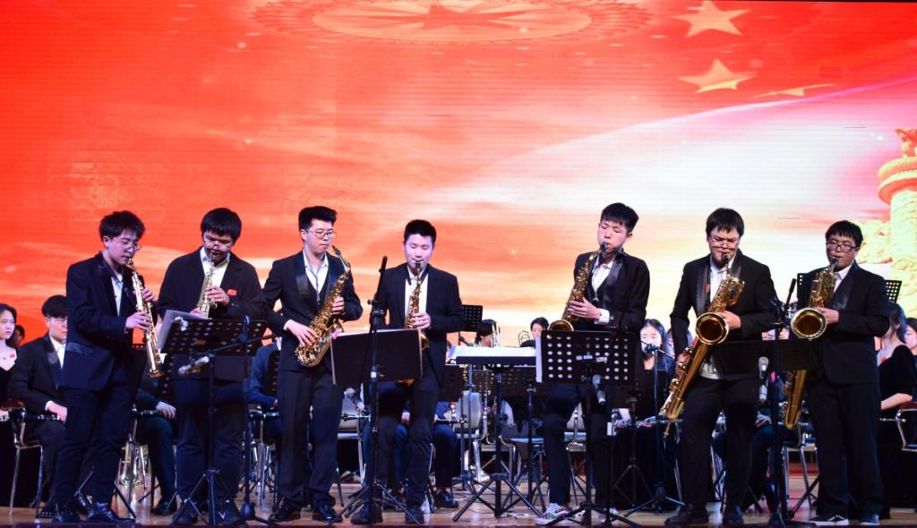 第一篇章“忆·峥嵘月”管乐团演奏《在太行山上》《红军胜利会师陕北》《红旗颂》等震撼人心的军乐曲目,在铿锵有力或热血悲壮的乐曲赏析中带领同学回顾中国共产党带领人民浴血奋战,取得民族独立的艰难历程。